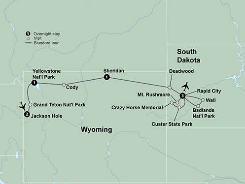Visit Yellowstone, Grand Teton National Park, Mt. Rushmore and the Crazy Horse Memorial on this great American adventure. Spend two nights in the cowboy town of Jackson Hole, Wyoming, the crown jewel of the Northern Rockies. Experience the Wild West as it once was at Yellowstone National Park, home to an incredible array of wildlife and Old Faithful. Search for free-ranging herds of buffalo in Custer State Park. Check off one of life’s must-dos with the thrill of seeing Old Faithful erupt. Marvel at Grand Teton National Park’s towering peaks, marked with mountain glaciers. Soak in stunning views of Mt. Rushmore and the Crazy Horse Memorials.